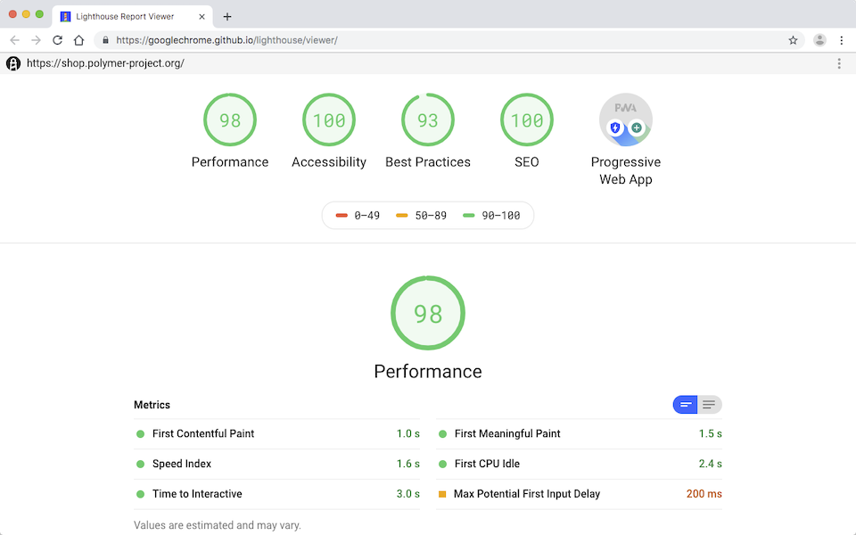 Screenshot of the Lighthouse tool from Google, source: Chrome Web Store