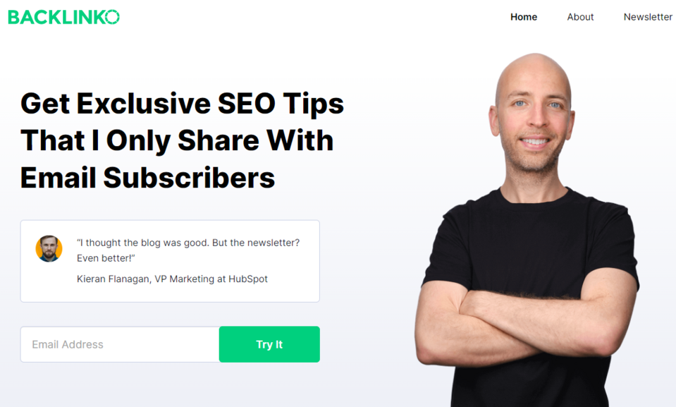 The CTA on the Backlinko website is placed in the Hero section. Thanks to this, the user can easily find it, even if they don't decide to use it immediately after entering the web page.